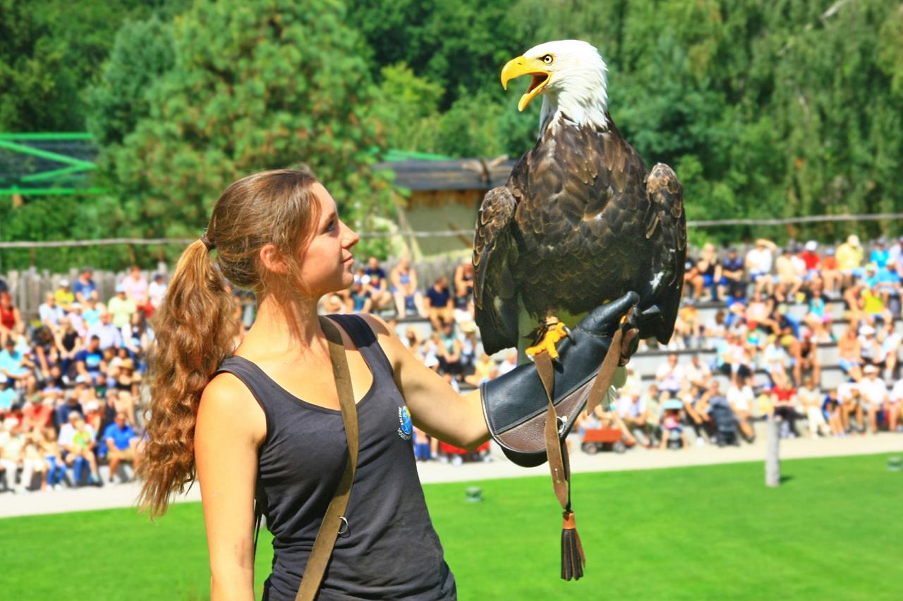 Diese Naherlebnisse werden in den zwei Flugvorführungen noch intensiviert. In der Tiershow „Papagei, Pelikan & Co.“ erfahren die Besucher auf sehr anschauliche Weise Wissenswertes über Marabu, Pelikan und Co. und können diese beim Freiflug beobachten. So zeigen zum Beispiel die Aras, wie schön Papageien im Formationsflug aussehen. Vertreter nahezu aller Kontinente zeigen auf der Bühne ihr Können und nehmen die Besucher mit auf eine kleine Weltreise. In der Flugshow erleben die Besucher majestätische Greifvögel und Eulen auf Falkner-Art.