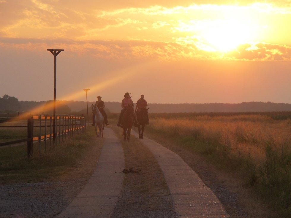 Für alle Reiter, die mit ihrem Partner Pferd den Alltag hinter sich lassen, Freiheit in der Natur spüren und kleine Abenteuer erleben wollen bietet WeiterReiter das richtige Angebot. Als erfahrene Wander- und Distanzreiter nehmen wir sie mit auf die schönsten Touren - stunden- oder tagelang. Von der alten Gutsanlage in Wardow im Mecklenburger ParkLand aus führen endlose Wege und Alleen in das wunderschöne Recknitztal und in die historische Kulturlandschaft mit ihren vielen Gutshäusern. Auf verschiedenen Strecken von bis zu 40 km kommen sowohl Wanderreiteinsteiger als auch erfahrene Wanderreiter voll auf Ihre Kosten. So können auch Reiter, die den Aufwand von Gepäcktransporten und wechselnden Unterkünften nicht auf sich nehmen wollen, auf Sternritten das Abenteuer "Wanderreiten" erleben. Auf unserem Hof bietet sich in geschmackvoll eingerichteten Ferienwohnungen Platz für 8 Personen. Gastpferde werden auf Koppeln, Paddocks oder in großzügigen Boxen untergebracht. Für diejenigen, die Mehrtagestouren mit wechselnen Stationen reiten wollen, bieten wir Strecken bzw. geführte Touren von zwei bis fünf Tagen an. Auf allen Touren wird auf die individuellen Bedürfnisse der Gäste geachtet. Kleine Gruppen von maximal acht Reitern machen es möglich auf evtl. Ausbildungs- oder Trainingswünsche einzugehen. Unseren Gästen soll wirklich ihr persönlicher Wanderritt geboten und nebenbei Wissen um z.B. das richtige Equipment, Kartenkunde oder Konditionseinschätzung seines Pferdes vermittelt werden. Für alle, die unser Angebot interessiert, bieten sich im Frühjahr und Herbst, wenn es nicht so heiß und „bremsenfrei“ ist, die besten Bedingungen.